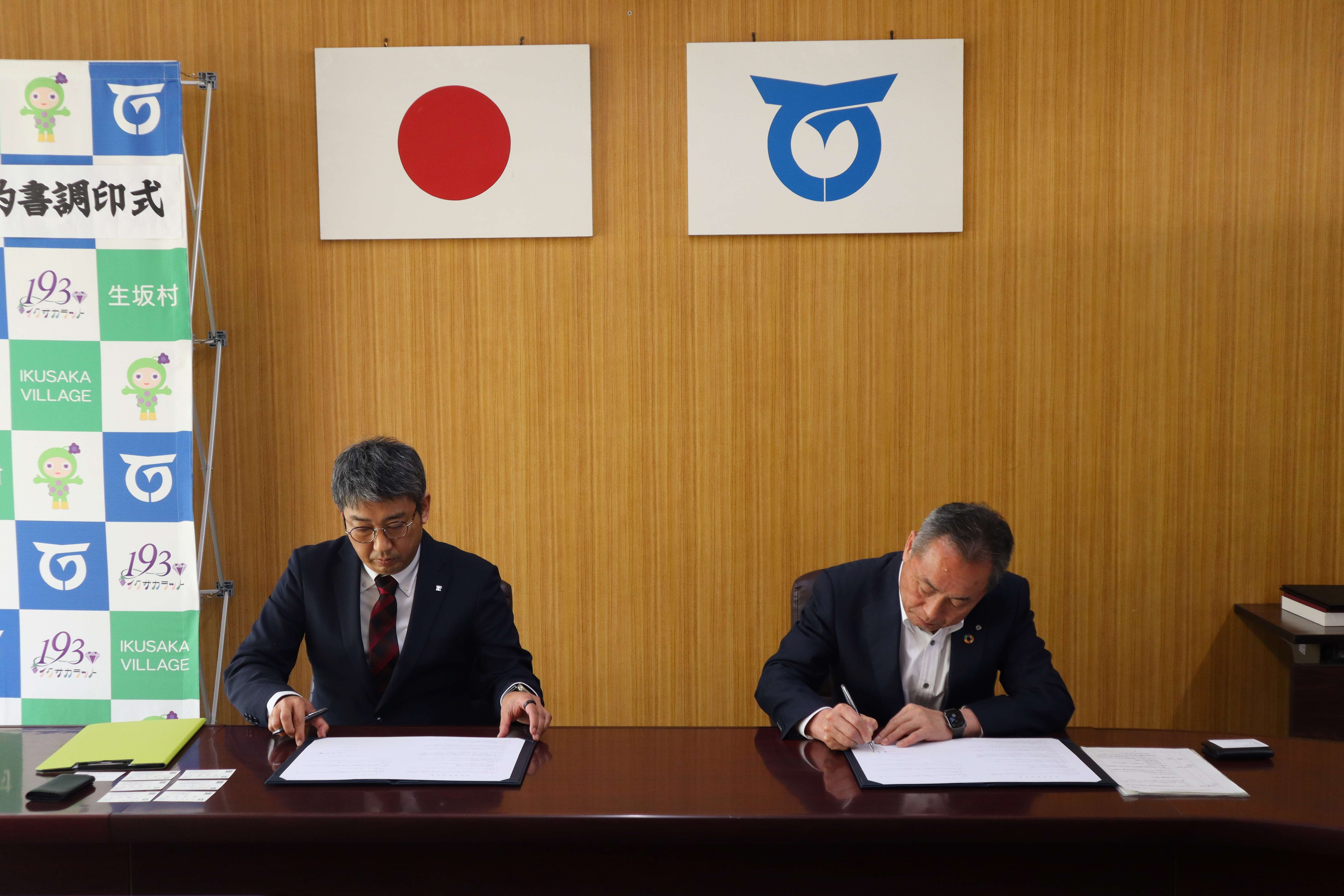 10月28日、生坂村役場にて「脱炭素事業に関する土地使用賃借契約書」の調印式が行われました。この契約により、当社は遊休地を村に貸借し、地域のエネルギー自給率向上と環境負荷低減に貢献します。