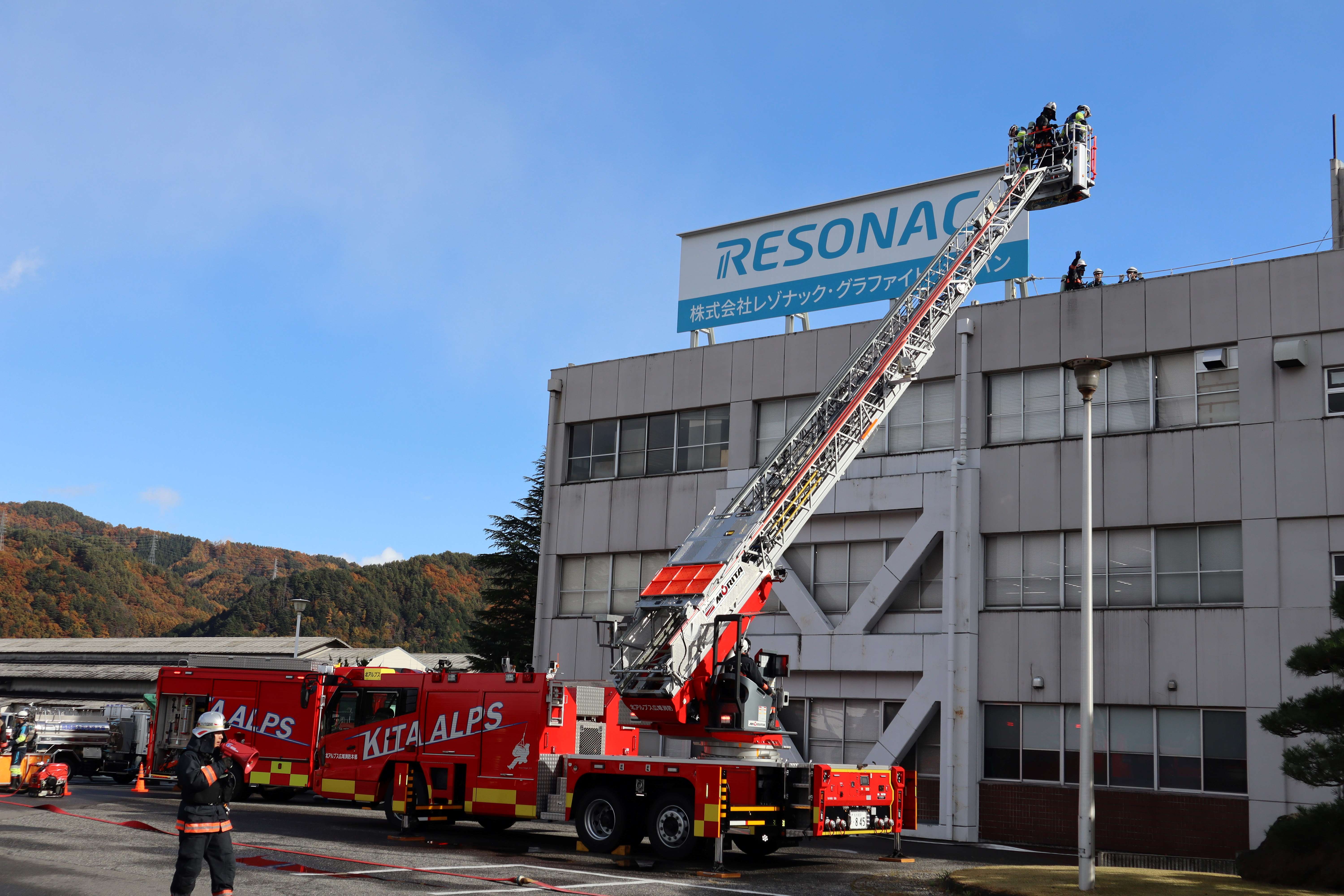 2025年11月27日11月10日(月)、レゾナック・グラファイト・ジャパン(RGJ)大町事業所で火災を想定した防火・防災訓練を行いました。大町消防署と大町市消防団との合同訓練で、統合事務所での火災を想定して「通報・避難・救助・消火」の実践訓練を実施しました。